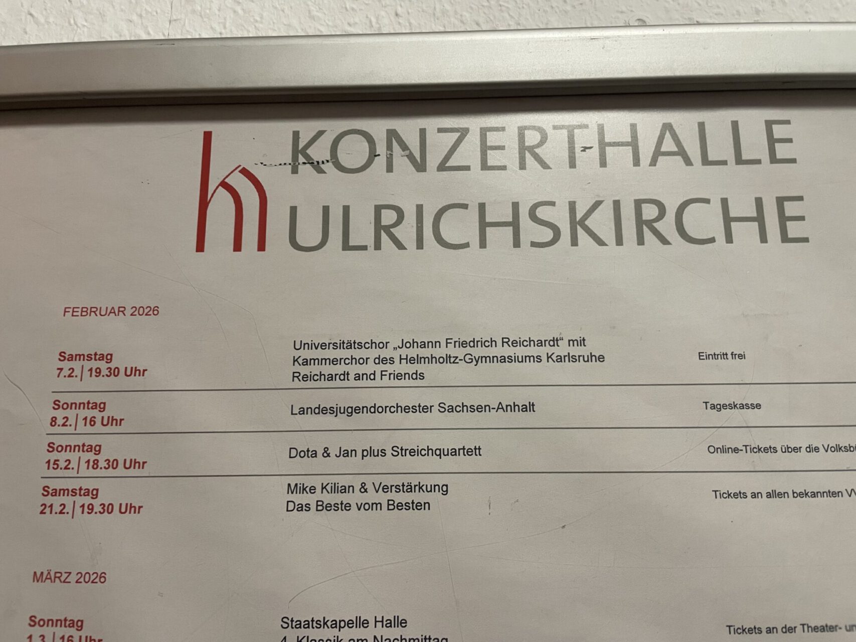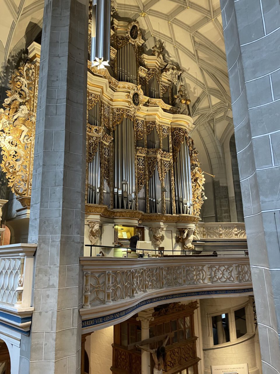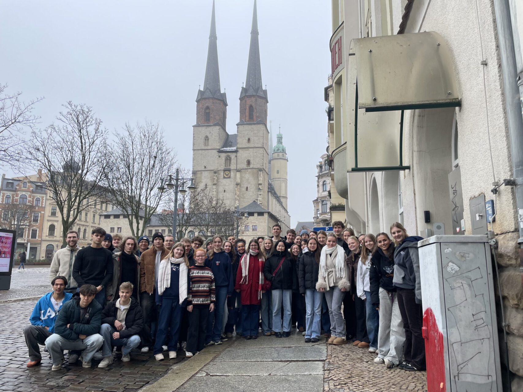 Zwei Tage waren wir mit dem Karlsruher Kammerchor auf Einladung des Universitätschores in unserer Partnerstadt Halle an der Saale und es war ein wirklich besonderes Erlebnis. Schon die Hinfahrt war ziemlich lustig, wie immer wurde im Bus viel geredet und gelacht. Nach rund sechs Stunden Fahrt kamen wir an der modernen und sehr zentral gelegenen Jugendherberge an und haben erst einmal unsere Zimmer bezogen. Lange ausruhen konnten wir uns aber nicht, denn schon nach einer halben Stunde ging es weiter mit einer Stadtführung. Dabei haben wir viel über Halle gelernt, vor allem über die große Bedeutung des Salzes für die Stadt. Es war spannend zu hören, wie wichtig das „weiße Gold“ früher war und wie sehr es Halle geprägt hat. Aber auch ein bisschen deutsche Geschichte, die Beziehung zu Karlsruhe und die Musik (Händel) waren Themen, die der Stadtführer fachkompetent und unterhaltsam angeschnitten hat.